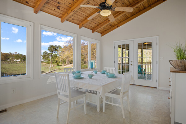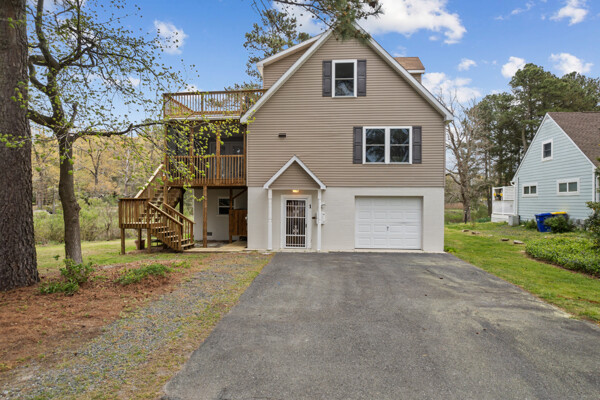 Welcome to your dream waterfront oasis nestled in Ocean View, Delaware, where million-dollar views meet unmatched tranquility. This captivating property offers a rare chance to embrace the tranquil lifestyle you've been dreaming of, surrounded by nature and canal views. With a generous 2300 sqft of living space, this home is ideal for creating lasting memories, offering 5 bedrooms, 3 bathrooms, and ample areas for both relaxation and entertainment. The heart of this home lies in its open kitchen, seamlessly flowing into the living area, ensuring every moment is shared with loved ones. Two screened porches invite the outdoors in, offering peaceful retreats for morning coffees or evening relaxation. The sunroom/dining room becomes a versatile space for any occasion. Convenience-centric design includes a powder room, a primary bedroom ensuite with private porch access for quiet mornings by the water, and an additional guest room. The adventure continues upstairs, where a spacious guest room opens to a private balcony with views that you must see! Two more guest rooms and a full bathroom provide plenty of space for family and friends. Practicality is also a hallmark of this residence, featuring a sizeable garage with a dumbwaiter, simplifying the movement between floors and making storage a breeze, especially for beach and boating gear. Located less than three miles from Bethany's pristine beaches and its lively boardwalk, close to Ocean View Brewery, John West Park, Assawoman Canal Trail, and the Salt Pond Golf Course. Experience the best of Coastal Delaware living surrounded by options for dining, golfing, fishing, and crabbing. Positioned at the end of a quiet street, next to a private boat ramp, this home is not just a residence but a lifestyle. Whether it's serene mornings by the water or exploring the local attractions, 1 Tingle St is where your dreams converge with reality. Don't miss the opportunity to own this exceptional waterfront retreat with NO HOA.