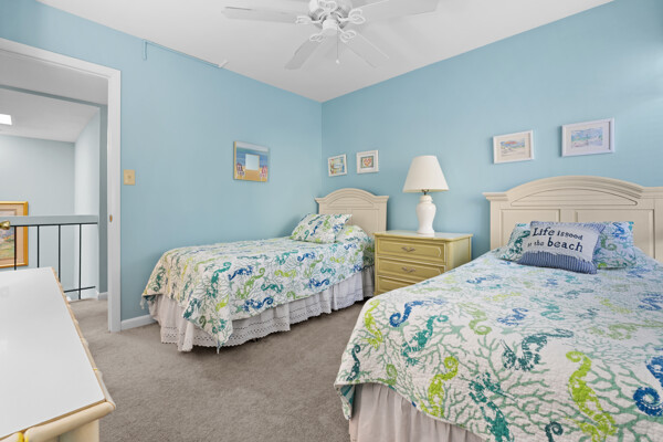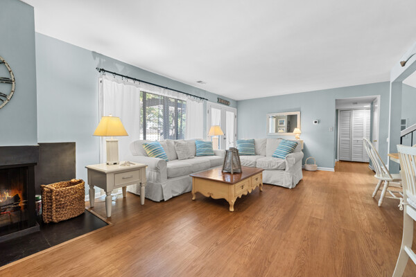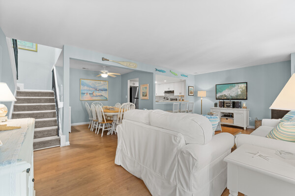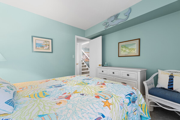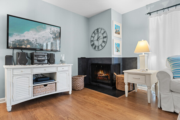 The main level features one bedroom and one full bathroom, a wood-burning fireplace for cozy off-season evenings, a wall-mounted flat screen, and a tastefully updated kitchen and bath. Upstairs, you’ll find three additional bedrooms—including the spacious primary suite—and two full bathrooms, providing plenty of room for family and guests.