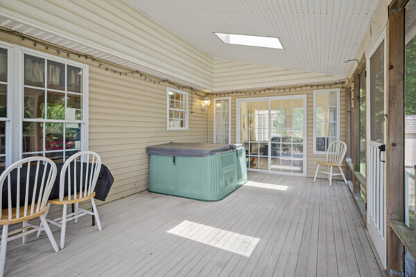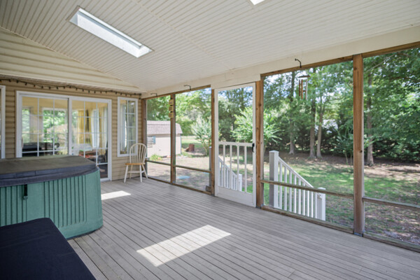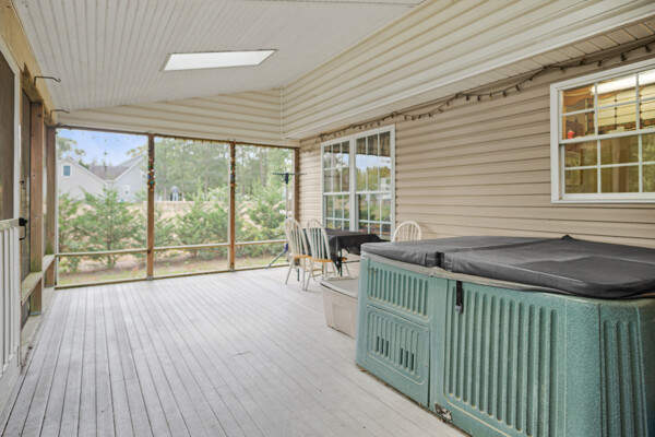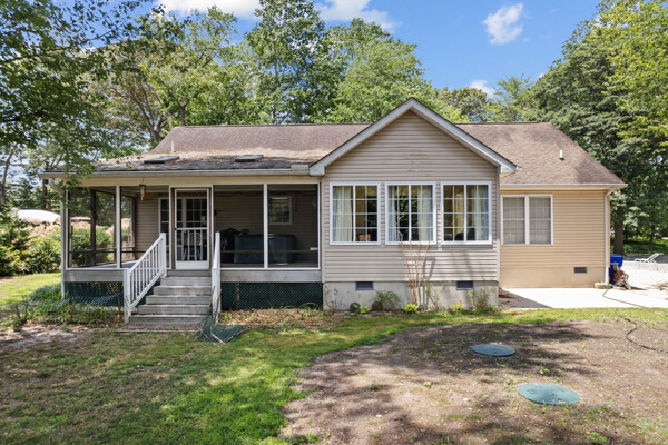 Experience the tranquility of coastal living in this 3 bedroom, 2 bathroom home in the serene Riverbend neighborhood. This charming one level home offers 1,827 square feet of living space, perfectly blending comfort and convenience for year round living or a peaceful retreat. The open floor plan seamlessly connects the living room, dining room, and sunroom, highlighted by vaulted ceilings with central lighting and fans, creating a spacious and inviting atmosphere. Cozy up by the fireplace on chilly winter nights, and enjoy ample natural light from large windows, especially in the sunroom where the morning sun creates a warm and welcoming ambiance. Each bedroom is thoughtfully designed for comfort and practicality, with the spacious primary bedroom featuring a large walk-in closet equipped with built-in lighting and shelving. The kitchen, bathrooms, and sunroom feature durable Congoleum no-wax thick-tile floors with a 50-year warranty, underscoring the home's quality and care. Additionally, off the kitchen, there is a versatile den/office space, perfect for working from home or enjoying a quiet reading nook. Outdoor living is equally delightful, with a quarter-acre lot adorned with 50 mature, trimmed trees, and a beautifully landscaped garden featuring tiger lilies and flowering plants. The concrete driveway and security lighting add both beauty and practicality to the exterior. For boating enthusiasts, a 25-foot boat slip in a secure, lighted, and locked marina just a few houses away is included with the home. The marina offers amenities such as fresh water, high-speed pump, concrete launch, picnic area, and boat washing facilities, ensuring endless opportunities for water activities and adventures. The side entrance 2-car garage includes a workbench and slop sink, meeting all your practical needs. Additionally, a sizable 10 by 20-foot outbuilding, partially floored and equipped with center shelving, a workbench with power tools, and multiple electrical connections, provides the ultimate space for crafts, storage, or hobbies. This home is environmentally conscious and efficient, featuring a Trane heating pump under warranty, a newly replaced deep well pump, and a state-certified upgraded septic system, ensuring comfort and peace of mind for years to come. Situated on a private road with a beautiful tree canopy, the neighborhood offers a one-way entrance that minimizes traffic and maximizes privacy. The 22 x 12 screened porch with Trex decking is a luxurious addition, perfect for relaxing in the included hot tub while enjoying the peaceful surroundings. Balancing aesthetic appeal with functional living, this home is ideal for anyone seeking the benefits of coastal living in a private, well-equipped community. Embrace the opportunity to make this house your new home and enjoy the peaceful, easy living it offers.