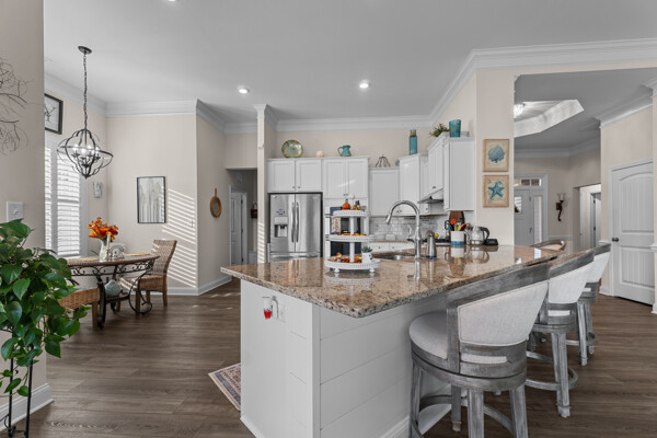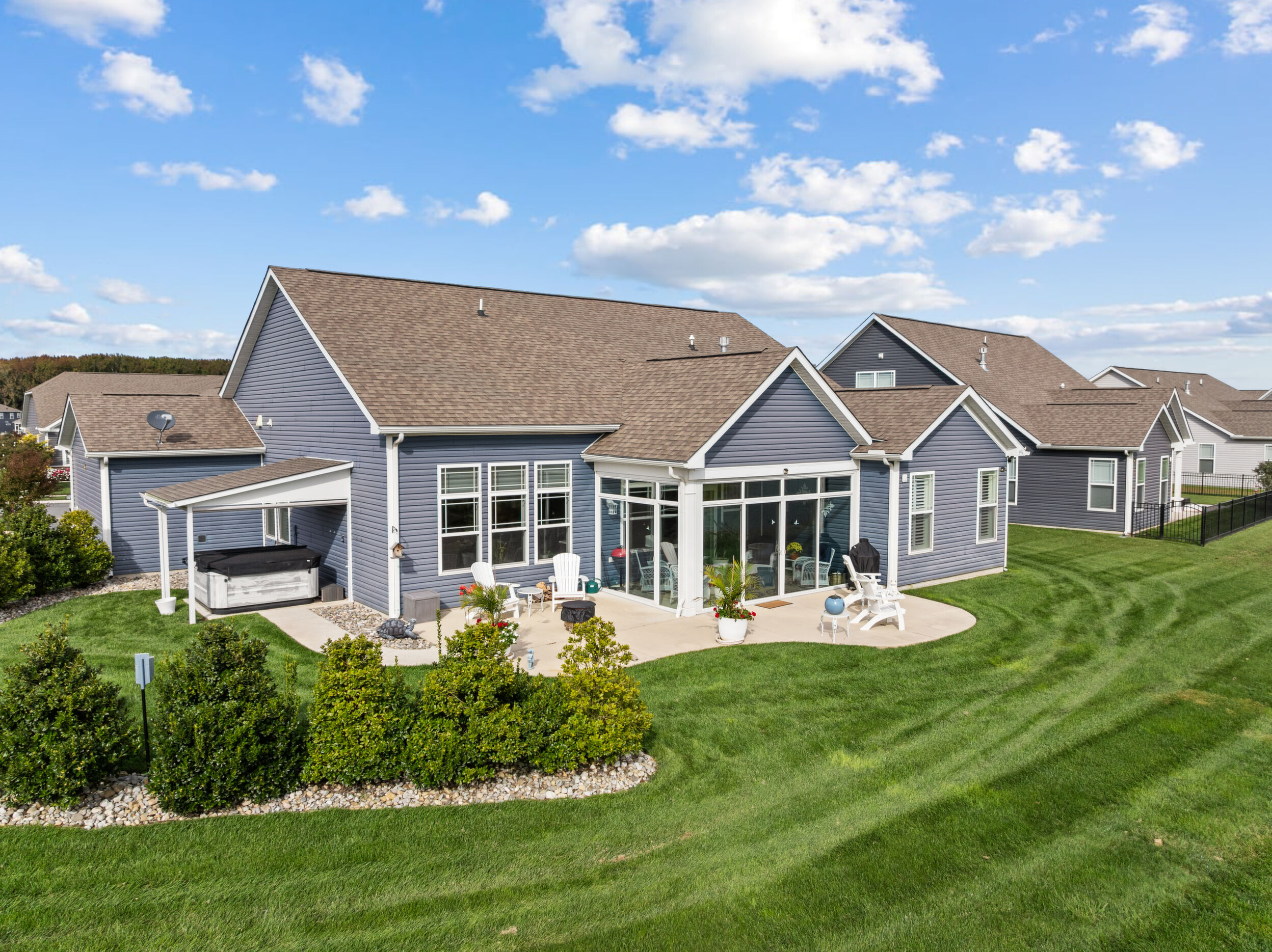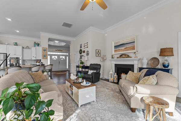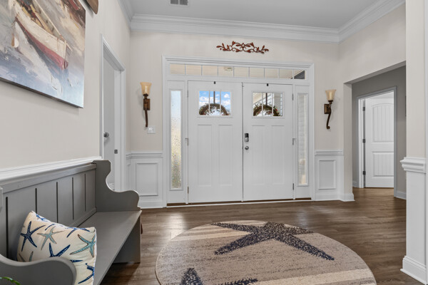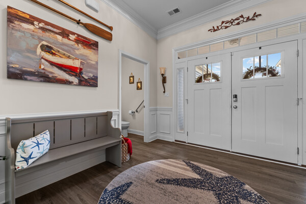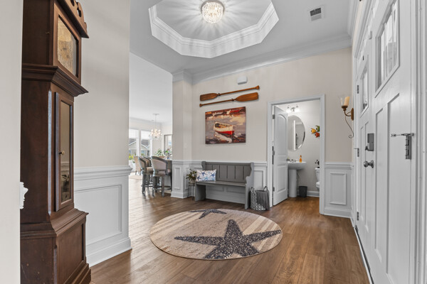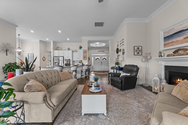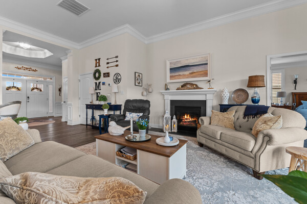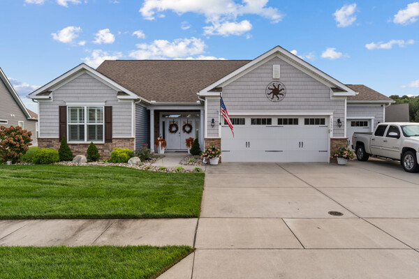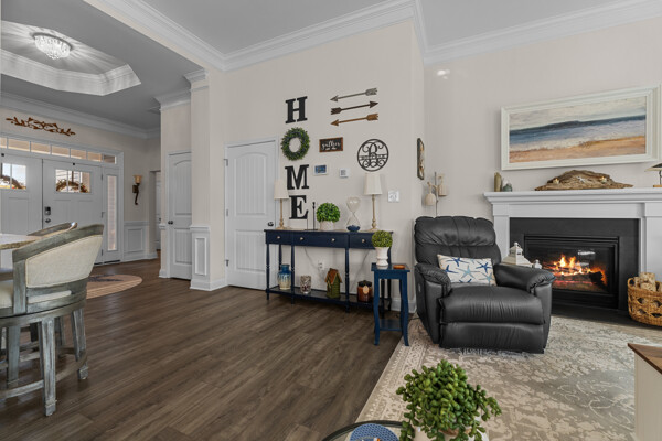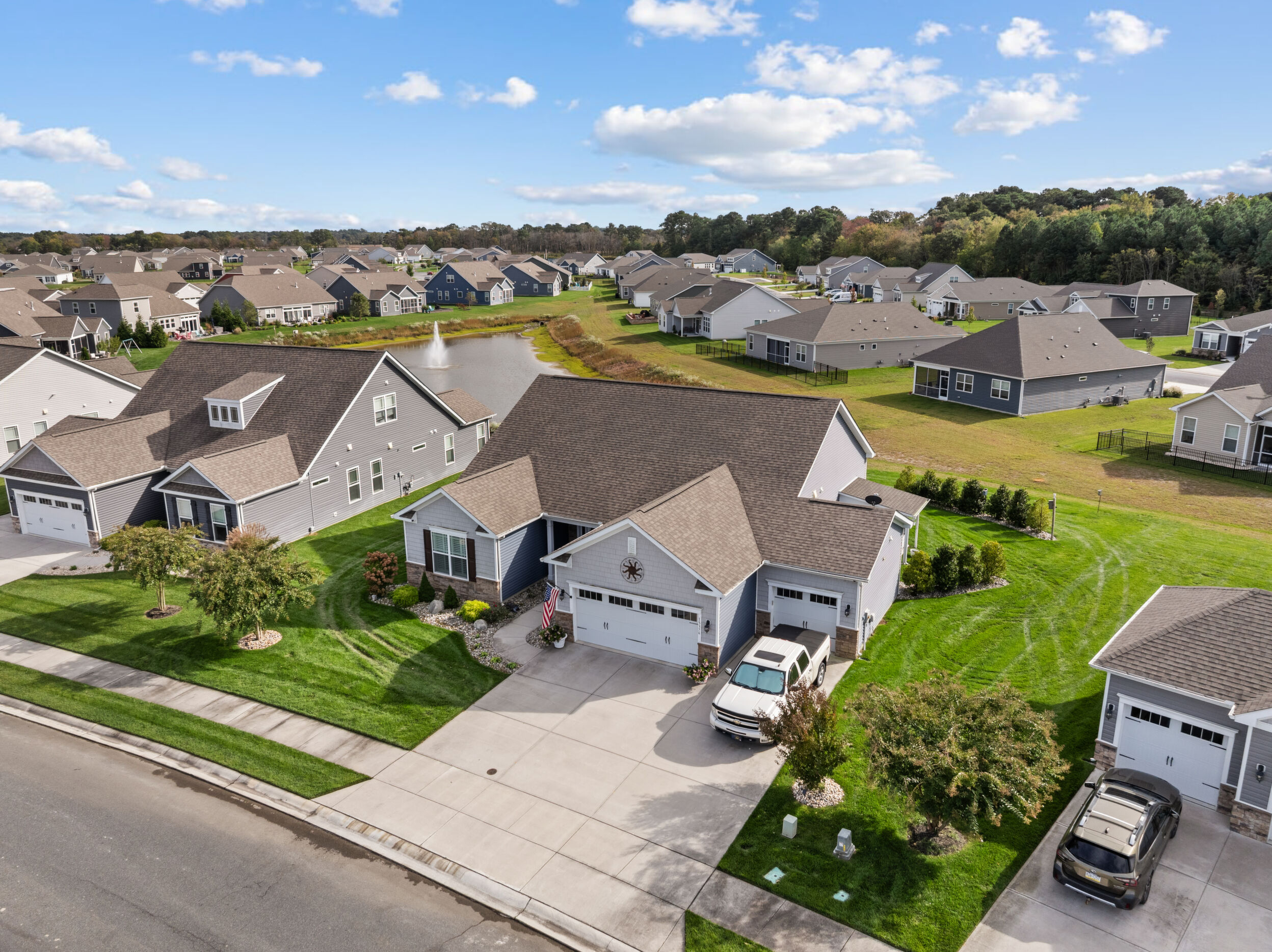 The popular Coastal floorplan, rarely available and priced to sell, in Woodfield Preserve offers the perfect blend of elegance, convenience, and thoughtful upgrades. With a cozy fireplace enhanced by a heat blower and a spacious 3-car garage with epoxy flooring and drywall, this home has been customized with details that make it truly stand out. Designed for easy one-level living, the 2,244 sq. ft. layout highlights an open-concept design with 11 foot ceilings, oversized windows, and refined finishes such as painted crown molding, chair rail accents, plantation blinds, rand emote-control curtains. The gourmet kitchen serves as the heart of the home with granite countertops, tile backsplash, stainless steel appliances, a cooktop with wall oven, a large island perfect for gatherings, and charming shiplap detail under the bar. Added touches throughout include additional LVP flooring, ceiling fans in every room, and two bidets for modern comfort. The owner’s suite is a private retreat with plantation shutters, a generous walk-in closet, dual vanity, and a walk in shower with bench. Two additional bedrooms share a full bath and benefit from a linen and coat closet, providing plenty of storage. Outdoor living is just as inviting with an enclosed porch and a concrete patio for entertaining, as well as a hot tub with its own roof canopy and privacy curtains. An invisible fence with collar included ensures pets can enjoy the yard safely, while eleven holly trees and professional stone landscaping create both beauty and privacy. A private well for irrigation makes maintaining the grounds both efficient and cost-effective. Additional highlights include a large safe, electric layered shade window treatments, and the exclusive Smart Home® Package for modern peace of mind. Even better, lawn care is included in the HOA, giving you a truly low-maintenance lifestyle. Just minutes from the beaches, Prime Hook trails, and The Rookery Golf Course, this home delivers comfort, convenience, and the best of coastal living.