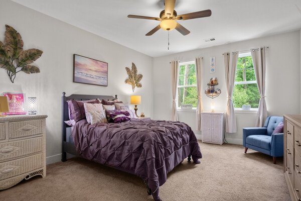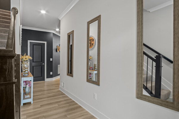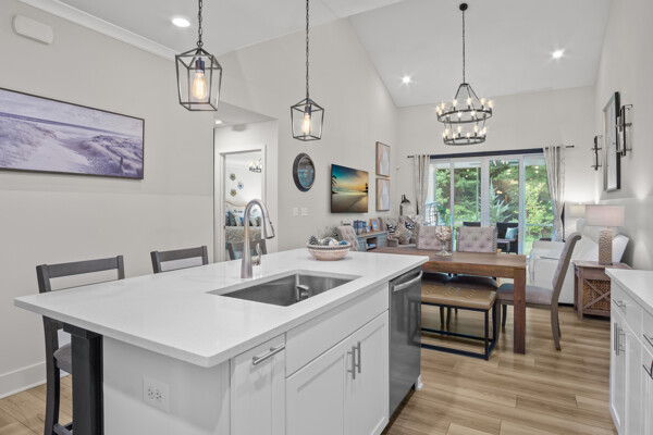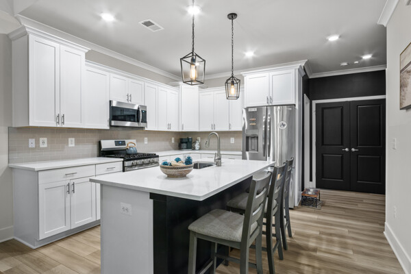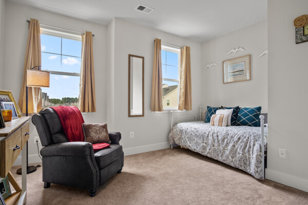 Discover modern comfort in this newly constructed townhouse, built in 2022 by Lennar Homes. This spacious 2,172 square foot residence offers four bedrooms and three and a half bathrooms, providing ample room for family and guests. The thoughtful layout includes two primary suites, one conveniently located on the main level and another on the second floor, offering flexibility for various living arrangements. Step inside to find a wealth of high-end finishes, including stainless steel appliances, modern farmhouse lighting, and soft-closing cabinets. The kitchen and primary bedroom are adorned with elegant quartz countertops, while guest bathrooms feature stylish granite surfaces. Throughout the main level upgraded luxury vinyl plank flooring adds a touch of sophistication. The primary bedroom on the main level is a true retreat, complete with a tray ceiling and crown molding, and picture window for extra natural light. Upstairs, a versatile loft area provides additional living space for work or play. Enjoy outdoor living on the screened porch, which overlooks a private backyard bordered by tranquil community woods. This townhouse offers the convenience of a two-car garage with extra ceiling storage and is situated on a peaceful dead-end street at the back of the community. Nature enthusiasts will appreciate the proximity to walking trails, perfect for leisurely strolls or invigorating hikes. One of the standout features of this property is the absence of condo fees, coupled with a low HOA fee that includes lawn care and NO short-term rentals. The Villas at Walden offers an array of amenities, including two pools, with brand new gorgeous clubhouse, pickleball courts, fitness center, tot lot, and a dock with kayak launch on Burton's Pond. Experience the perfect blend of comfort, style, and community in this exceptional Harbeson townhouse. Shows like a model, this one you don't want to miss!