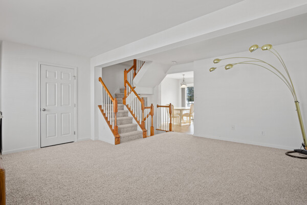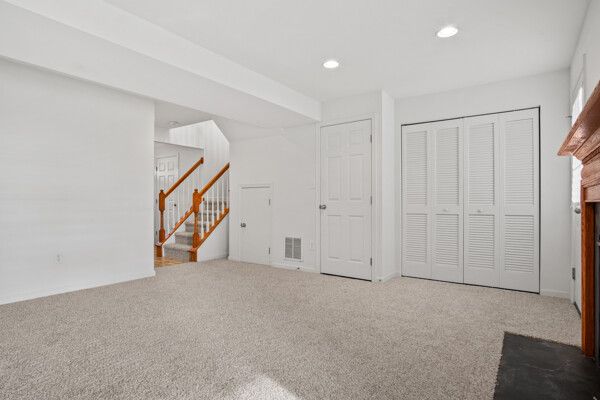 The ground level includes a single-car garage, a half bath, a large recreation room with fireplace, and a laundry area, with sliding glass doors that open to a covered concrete patio. On the second floor, you’ll find an open living room and a well-appointed kitchen with a pantry, granite countertops, and an eat-in area. Just off the dining area, a large deck overlooks a fountain pond, offering a peaceful spot to relax and enjoy stunning sunsets.