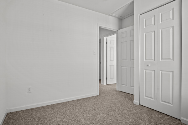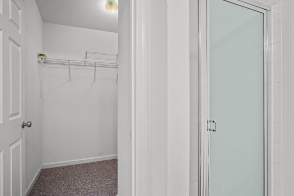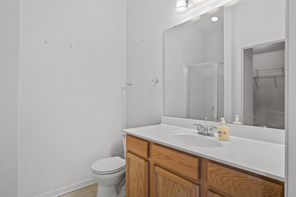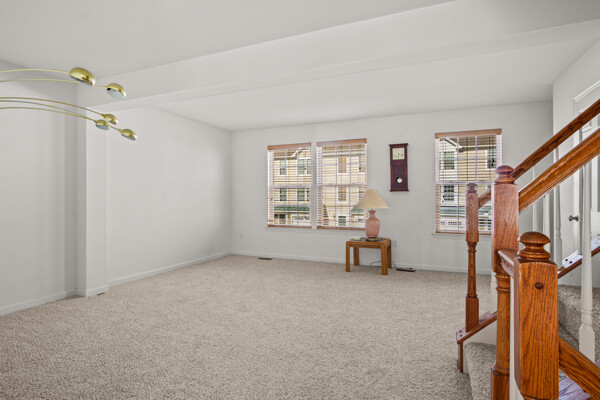 On the top floor, the primary suite features a vaulted ceiling and a spacious walk-in closet. The attached bathroom includes a double vanity, a soaking tub, and a shower. Two additional guest bedrooms and a full bathroom complete this level.